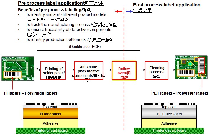 特种条码标签在PCBA,FPC的回流炉及波峰焊的制造工艺中的解决方案